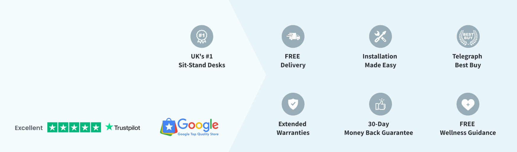 Rated "Excellent" on Trustpilot, we offer free delivery and a 30-day money-back guarantee. Our UK team is here to help you find the right ergonomic setup.